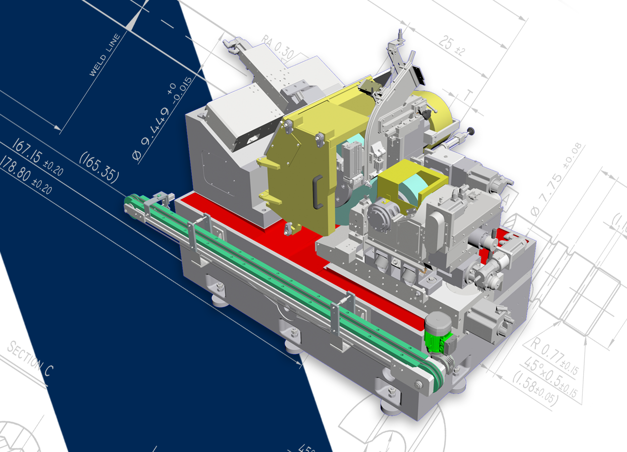 The grinding wheel is operated by a hydrodynamic spindle at a speed of 45 mt./s.